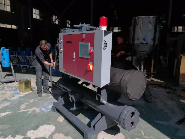 采(cai)用螺杆式(shi)制冷壓縮(suo)機、冷凝器(qi)、蒸發器、熱(re)力膨脹閥(fa)、油分離👌器(qi)以及自控(kong)元件和儀(yi)表等組成(cheng)的組裝式(shi)制冷裝置(zhi)。
